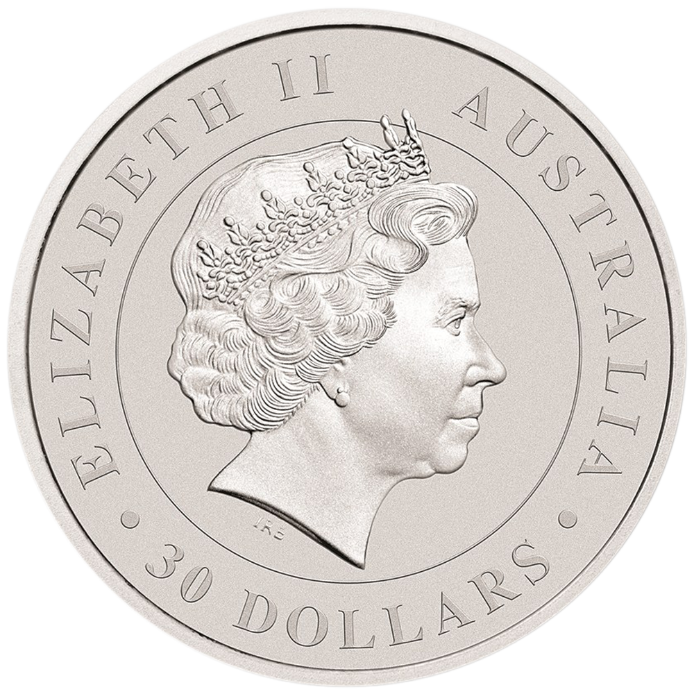 L'avers met en avant l’effigie de sa Majesté la Reine Elizabeth II crée par Jody Clark et portant l'inscription suivante : « ELIZABETH II 1952-2022 AUSTRALIE - 30 DOLLARS ».