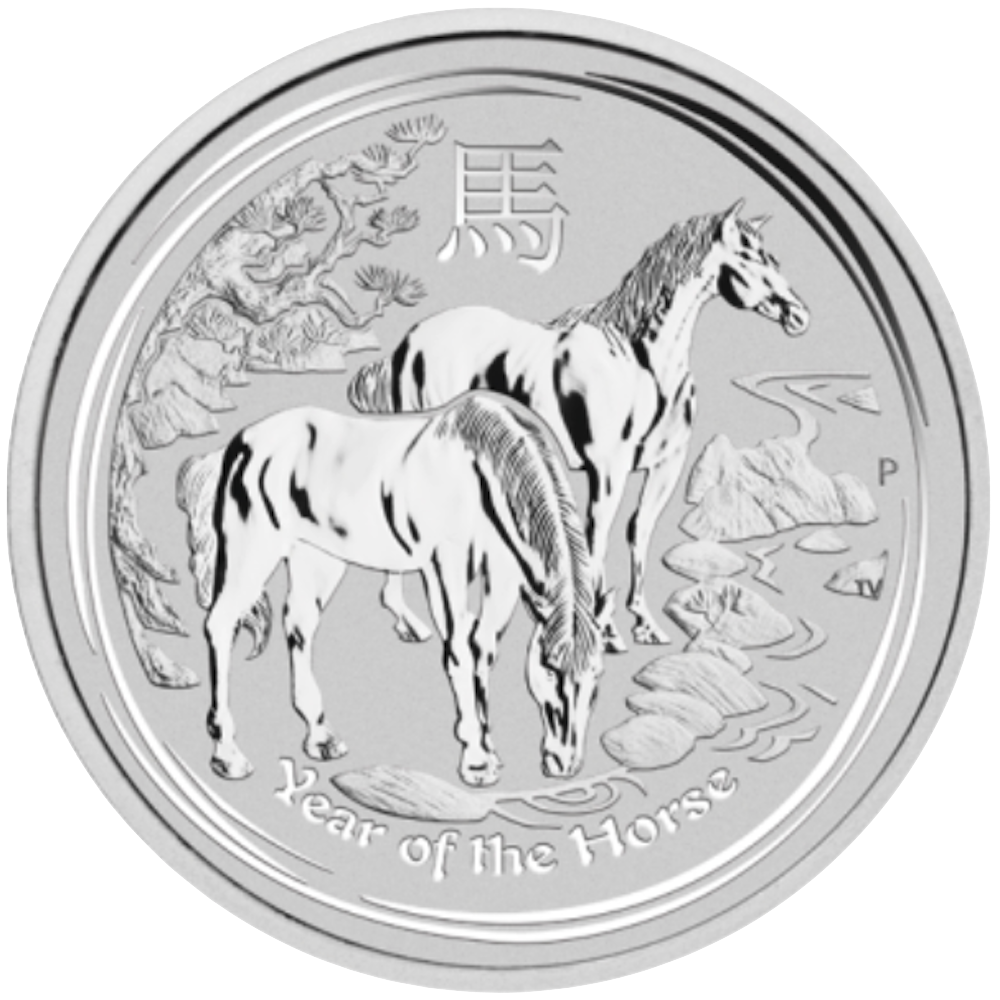 La face inclus le sinogramme du cheval, un "P" de Perth Mint ainsi que l'inscription "Year of the Horse".