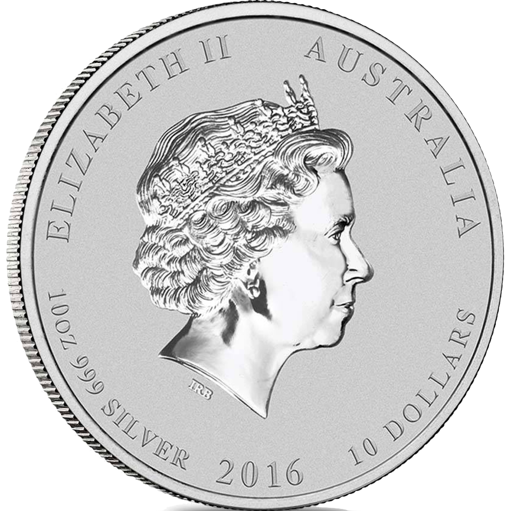 Il y apparait son nom "ELIZABETH II" en haut suivi de "AUSTRALIA » mais aussi la valeur faciale 10 Dollars, le poids, l’année d’émission, la pureté ainsi que la teneur en métal.