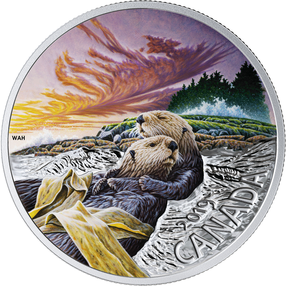 Œuvre de W. Allan Hancock, la pièce montre deux loutres de mer (Enhydra lutris) dans un impressionnant paysage océanique. Les animaux enlacés se sont enveloppés de varech pour éviter de partir à la dérive durant leur sommeil, et un coucher de soleil spectaculaire embrase les nuages et le ciel au-dessus de la côte pacifique canadienne.