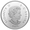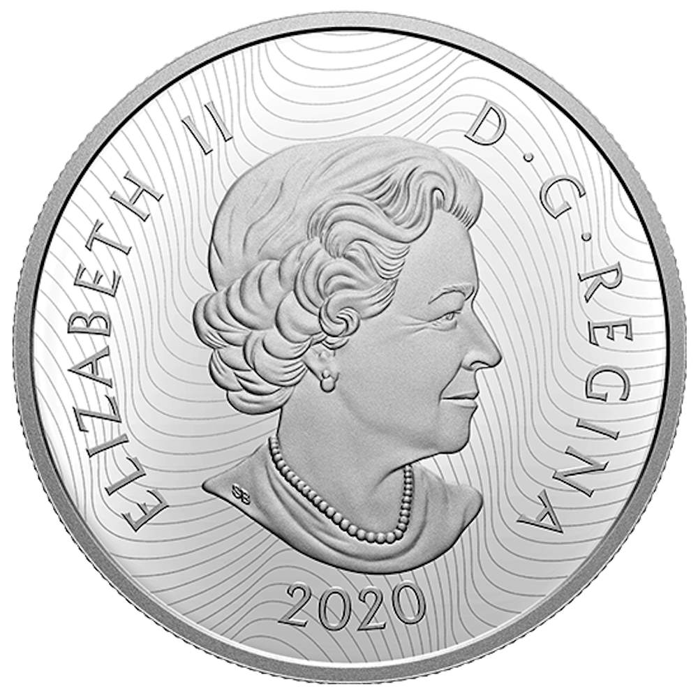 Conçu par l'artiste Maurade Baynton, le revers de la pièce en argent Élan 2 onces présente une vue rapprochée en couleurs de l'Élan (Alces alces). L'arrière-plan finement gravé met en valeur l'habitat naturel de cet imposant animal : la forêt boréale qui s'étend à travers le Canada.