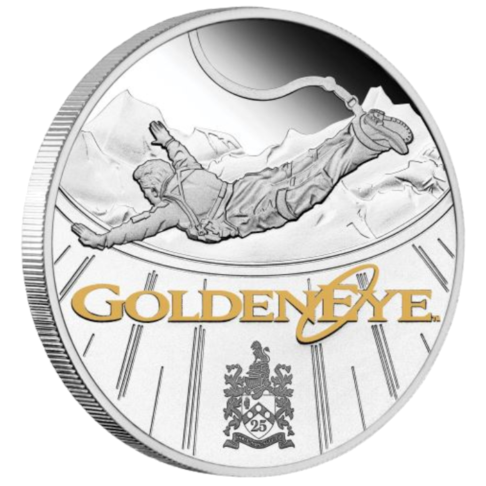 A l'occasion du 25e anniversaire du blockbuster de James Bond GoldenEye, la Perth Mint édite cette superbe pièce en argent avec un dessin inspiré de la spectaculaire séquence d’ouverture du film.