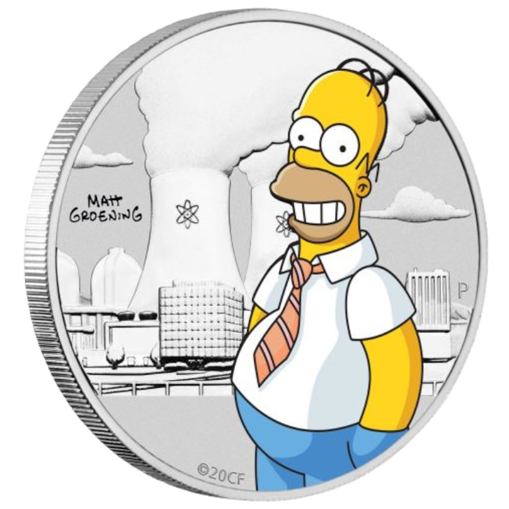 Cette face comporte également la marque d'atelier de la Perth Mint et la signature de Matt Groening.