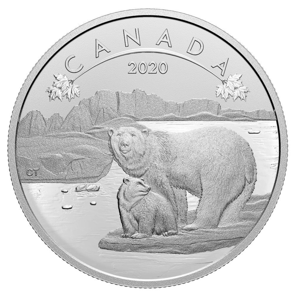 Le motif au revers, œuvre de l'artiste animalier canadien Claude Thivierge, dépeint une maman ourse polaire (Ursus maritimus) et son petit debout sur une banquise en plein Arctique canadien. Le revers comporte également la mention incurvée « CANADA », le millésime « 2020 » et des feuilles d'érable ornementales.