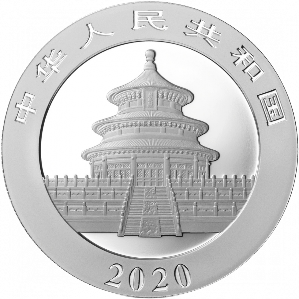 Le revers de la pièce argent panda est nettement plus identifiable : on y observe le temple du ciel situé à Pékin. La titulature en mandarin est la suivante : « 中华人民共和国 » soit « République populaire de Chine » tandis que le millésime est visible dans la partie inférieure.
