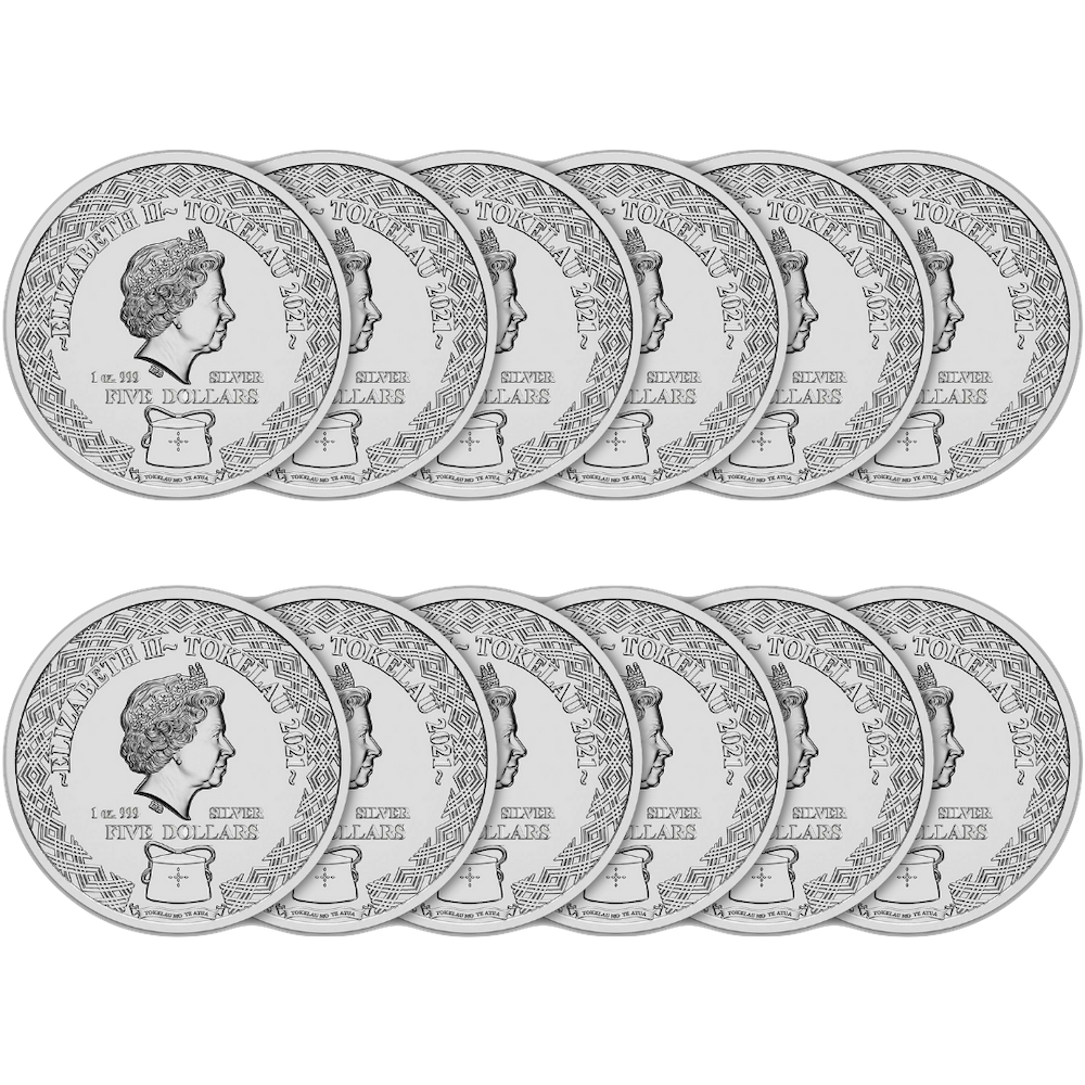 Le revers, commun à l'ensemble de la série est gravé du portrait de la reine Elizabeth II avec le Tuluma, symbole national des Tokélaou.