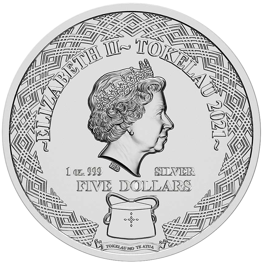 Quand au revers, il y est gravé le portrait de la reine Elizabeth II avec le Tuluma, qui est le symbole national des Tokélaou.