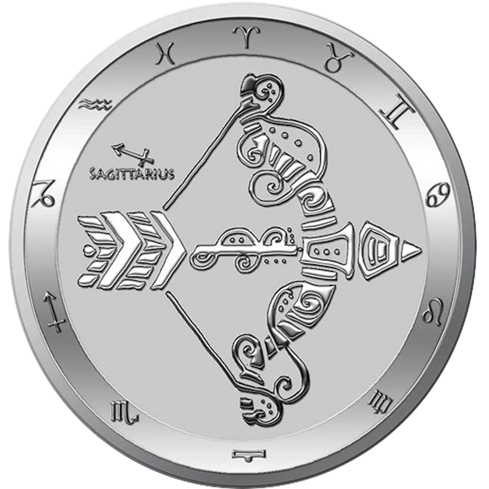 Cette pièce de 1 once d'argent célèbre l'astrologie et plus particulièrement le signe du zodiaque du Sagittaire.