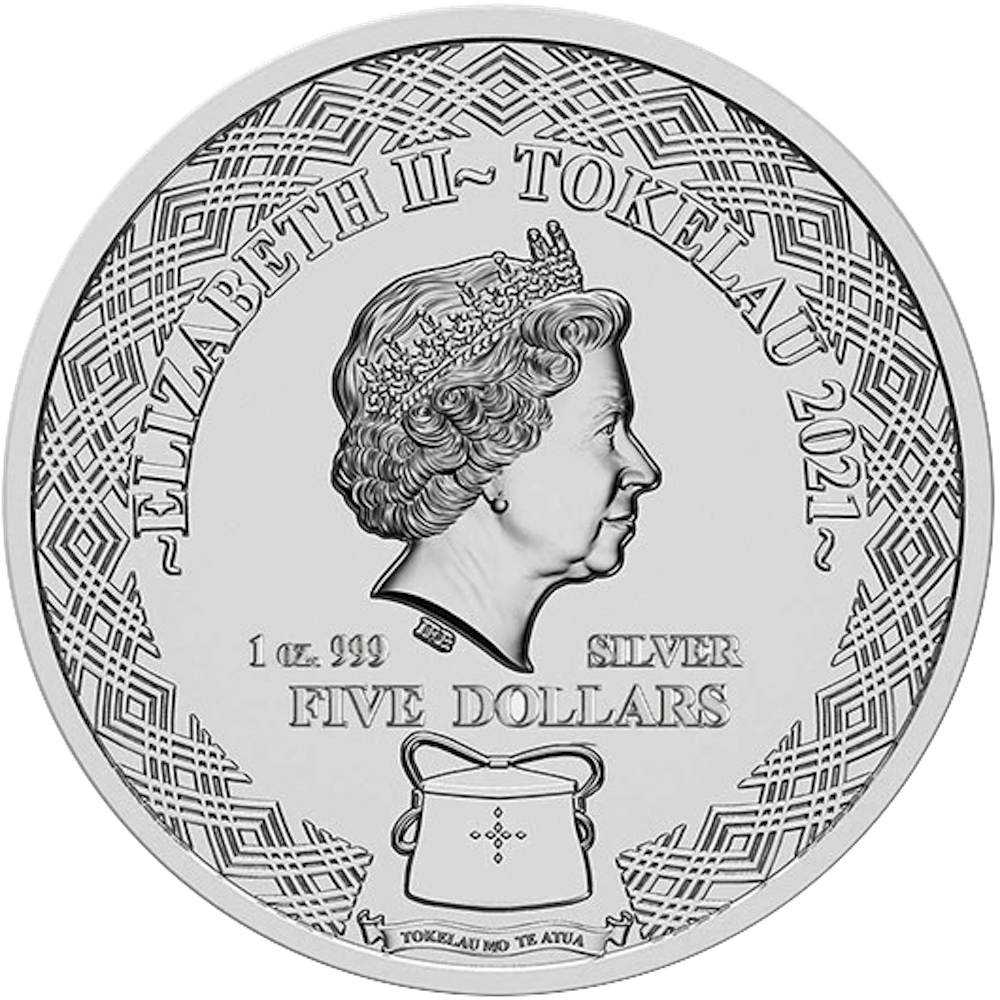 Sur le revers, on y voit le portrait de la reine Elizabeth II avec le Tuluma, symbole national des Tokélaou.