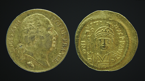 Vous pourrez y retrouver une série de solidi du début de l’Empire byzantin, ainsi que des monnaies royales françaises. Pour terminer cette sélection, nous vous présentons un rarissime exemplaire de la 20 francs or de Louis XVIII frappé en 1824 à Marseille, où seulement 1984 exemplaires furent produits cette année-là.