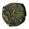 Description : Croix bouletée au centre, cantonnée au 1er d’un arc de cercle et d’un globule pointé, un globule au 2e et au 4e canton, hache bouletée au 3e canton.