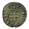 Description : Châtel tournois sommé d'une croisette coupant la légende à 6 heures.