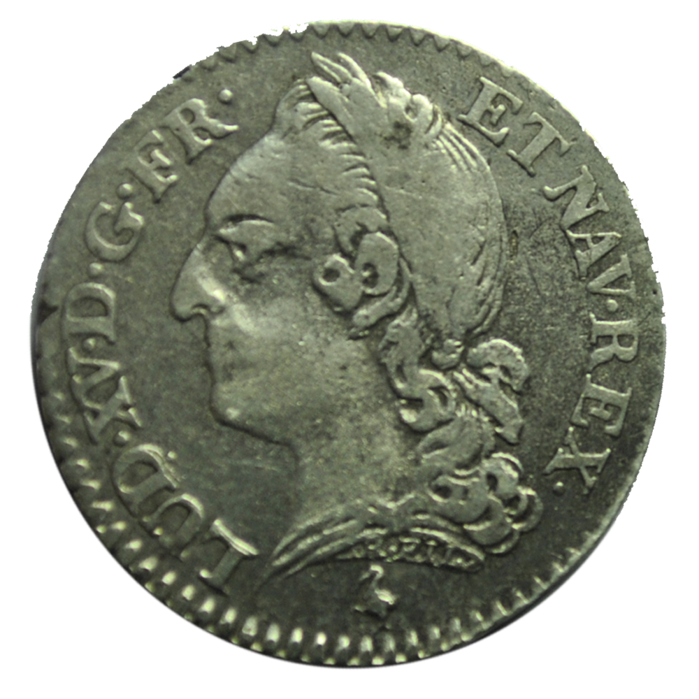 Légende : LUD. XV. D. G. FR. - ET NAV. REX..(Louis XV, par la grâce de Dieu, roi de France et de Navarre.)