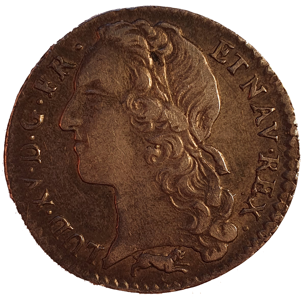 Titulature : LUD XV.D. G. FR. ET. NAV. REX. (Louis XV, par la grâce de Dieu, Roi de France et de Navarre)