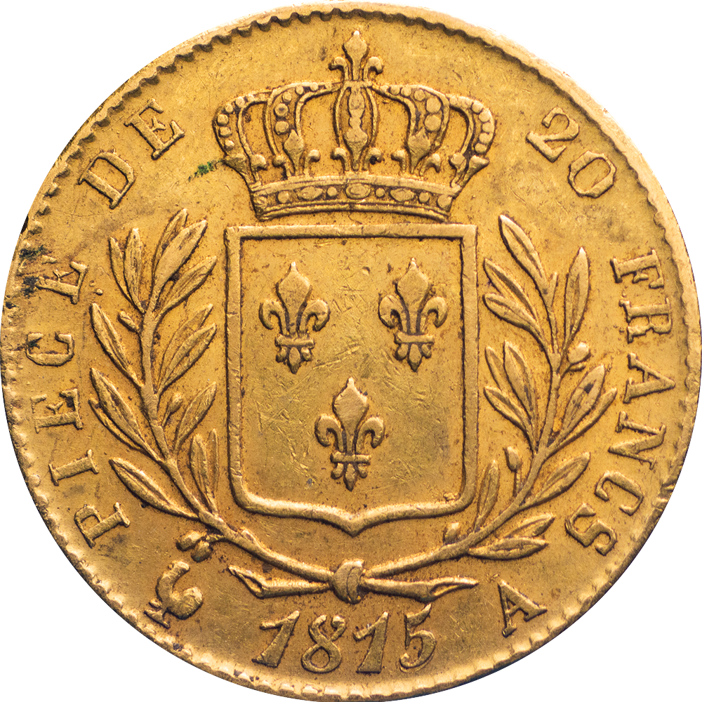 PRIX ET VALEUR DU PIÈCE DE MONNAIE : LOUIS XVIII-20 FRANCS 1815 PARIS