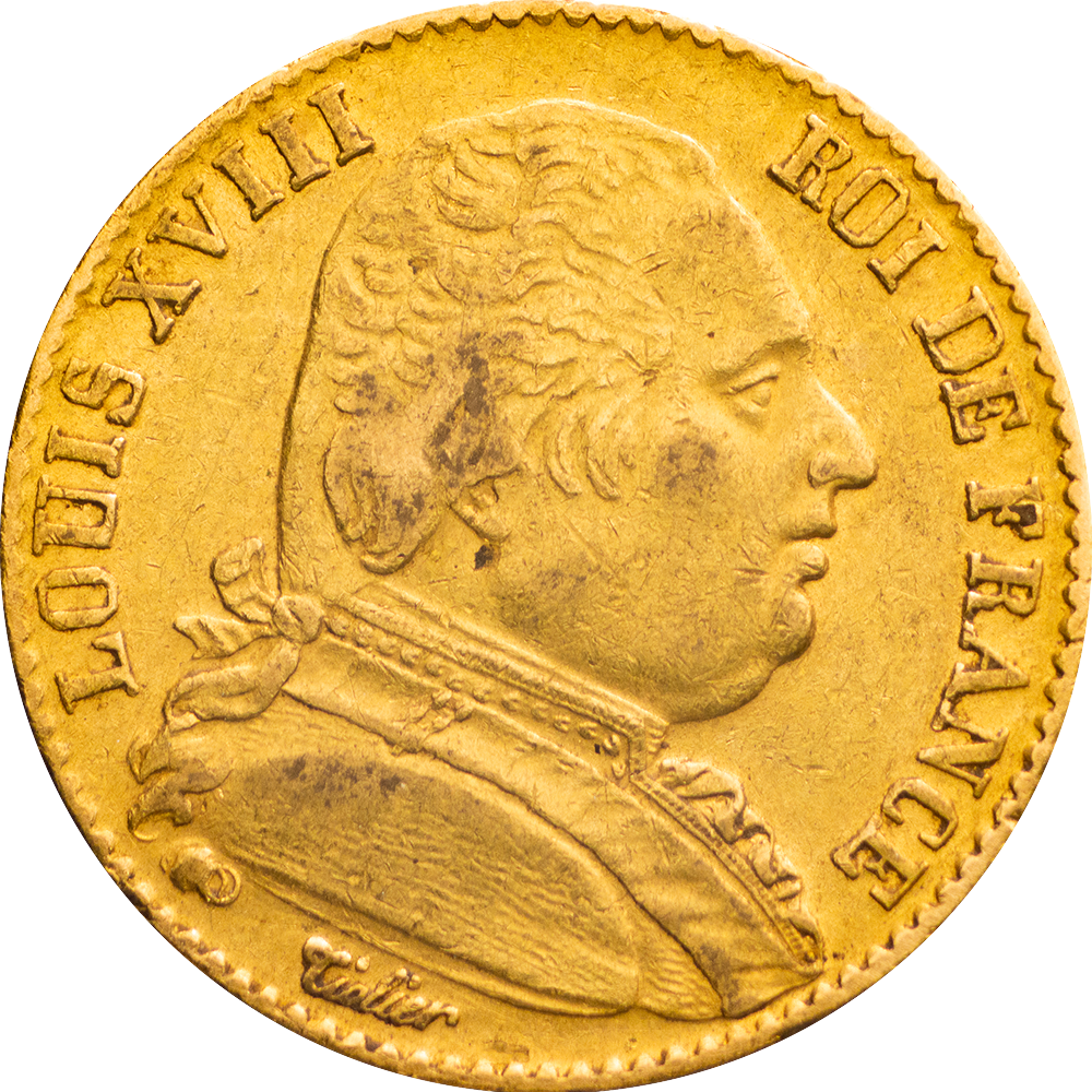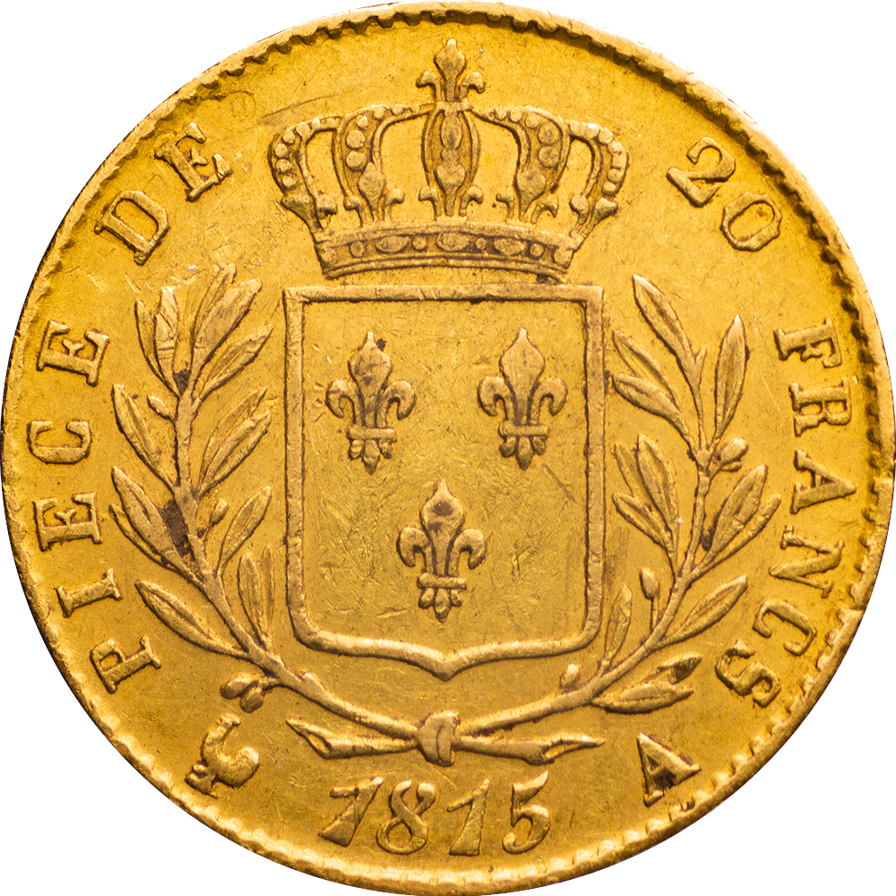 PRIX ET VALEUR DU PIÈCE DE MONNAIE : LOUIS XVIII-20 FRANCS OR 1815 PARIS