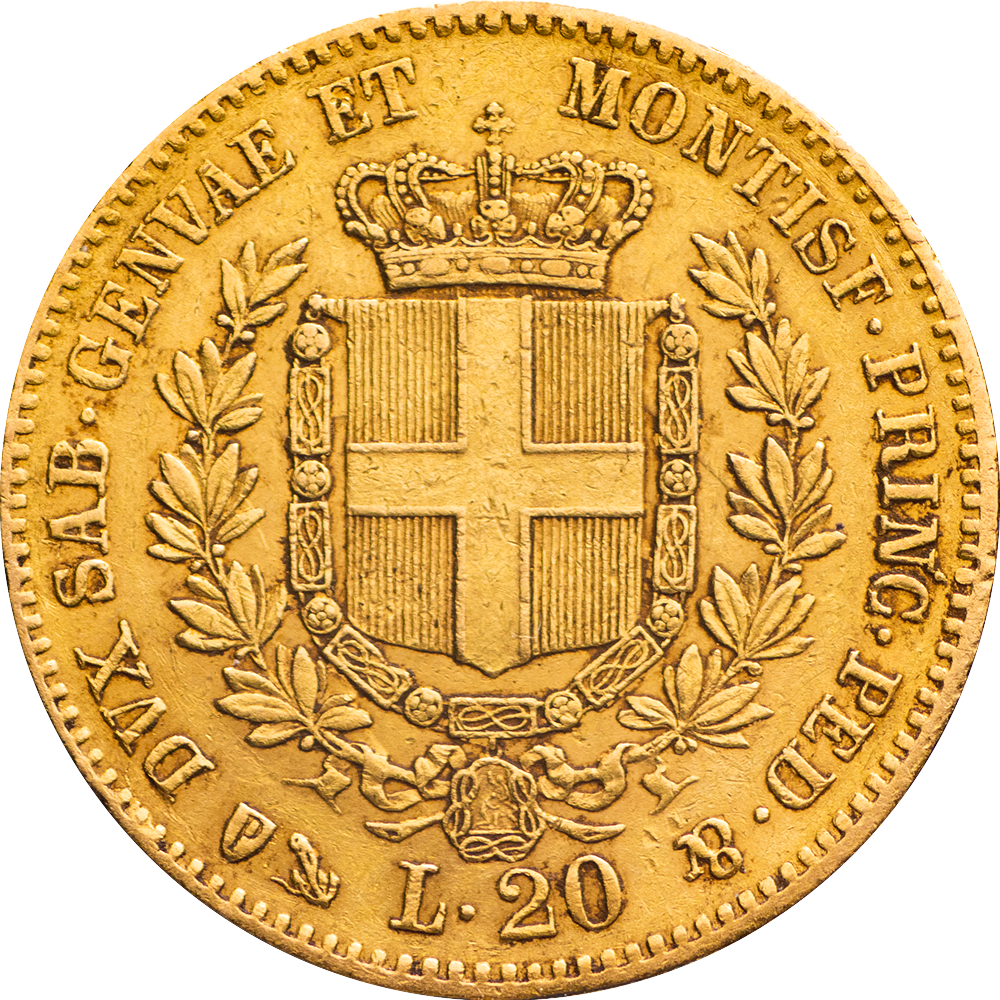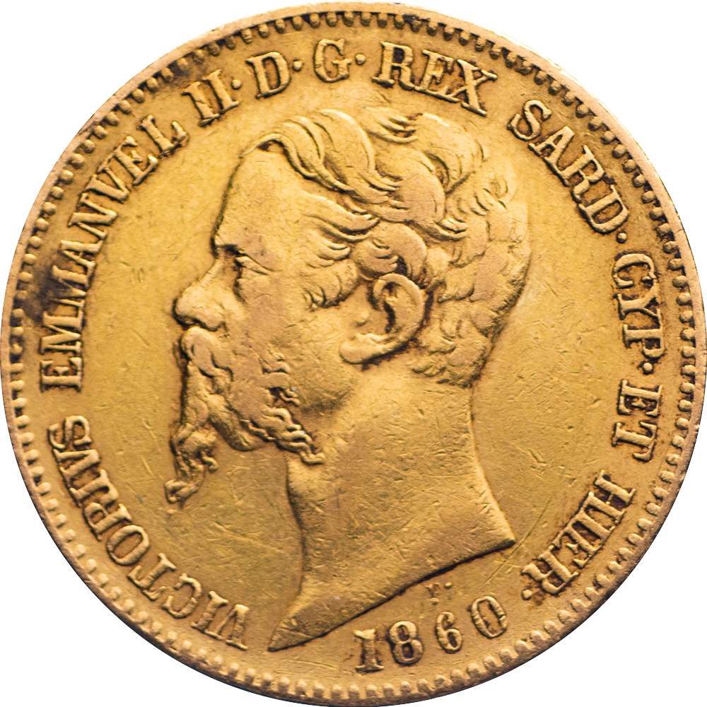 Légende : VICTORIVS EMMANVEL II·D·G·REX SARD·CYP· ET HIER·