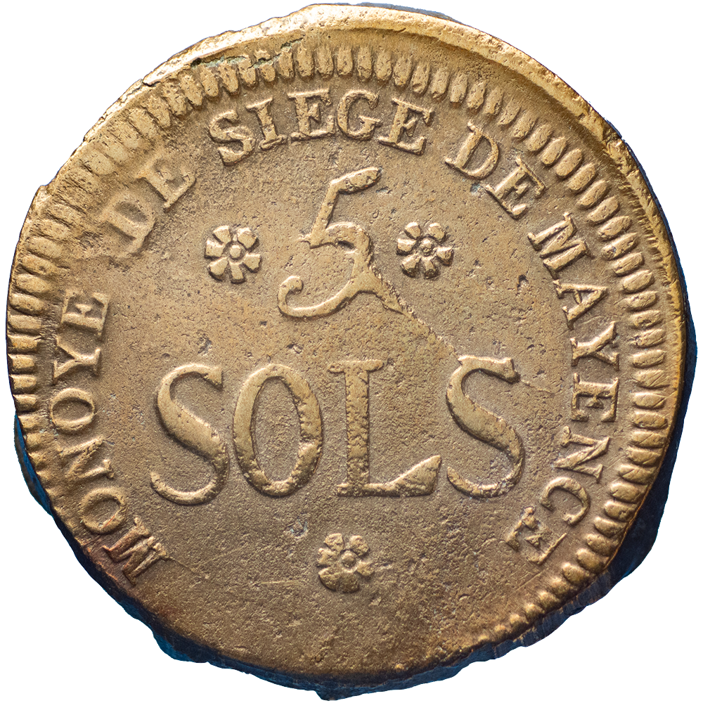 PRIX ET VALEUR DU PIÈCE DE MONNAIE : SIÈGE DE MAYENCE 5 SOLS 1793