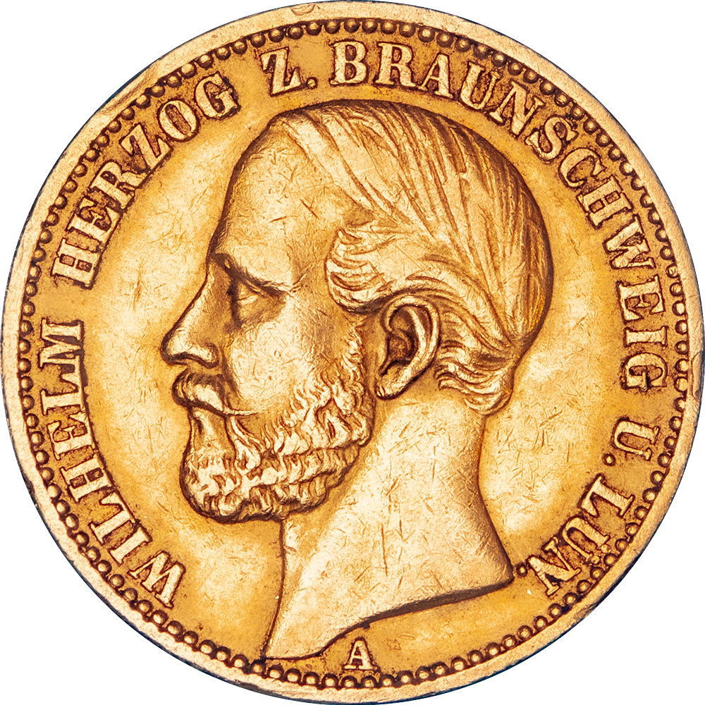 PRIX ET VALEUR DU ALLEMAGNE - BRUNSWICK 20 MARK OR GUILLAUME DUC DE BRUNSWICK 1875 BERLIN N°2