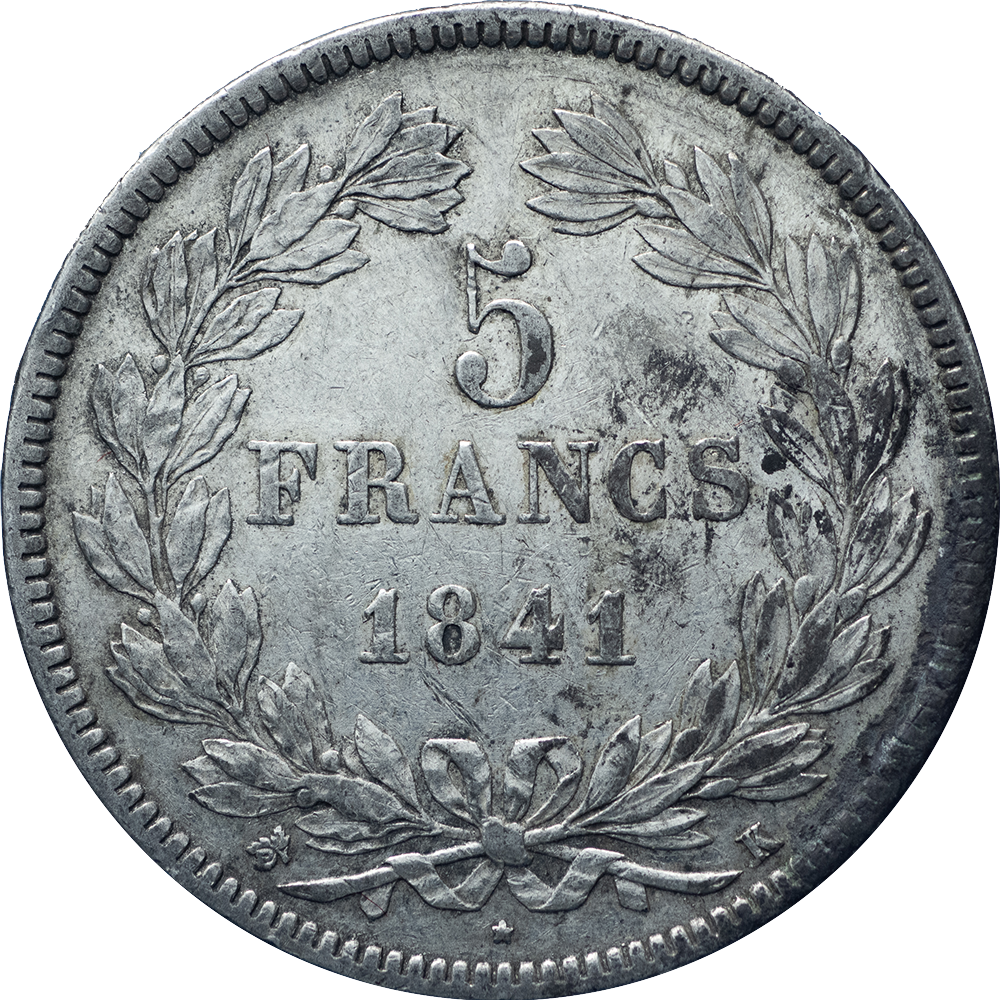 Description : tête de Louis-Philippe Ier à droite portant une couronne de chêne terminée par un ruban descendant le long du cou.