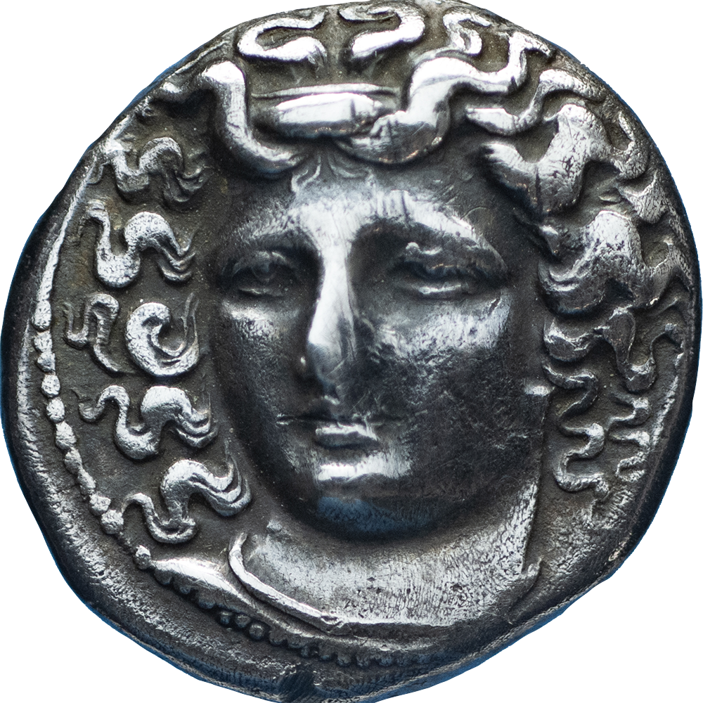Monnaie ovale et irrégulière, légèrement décentrée. Belle tête de nymphe, patine de collection ancienne.