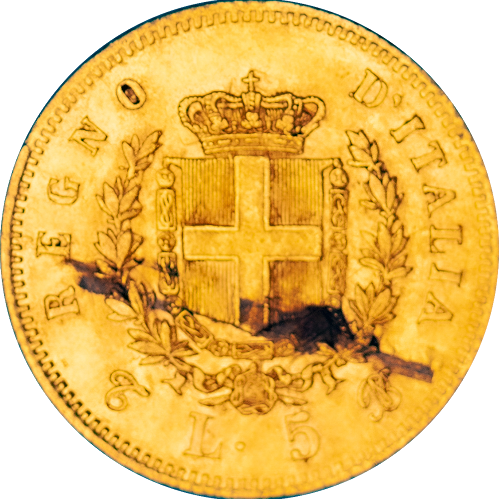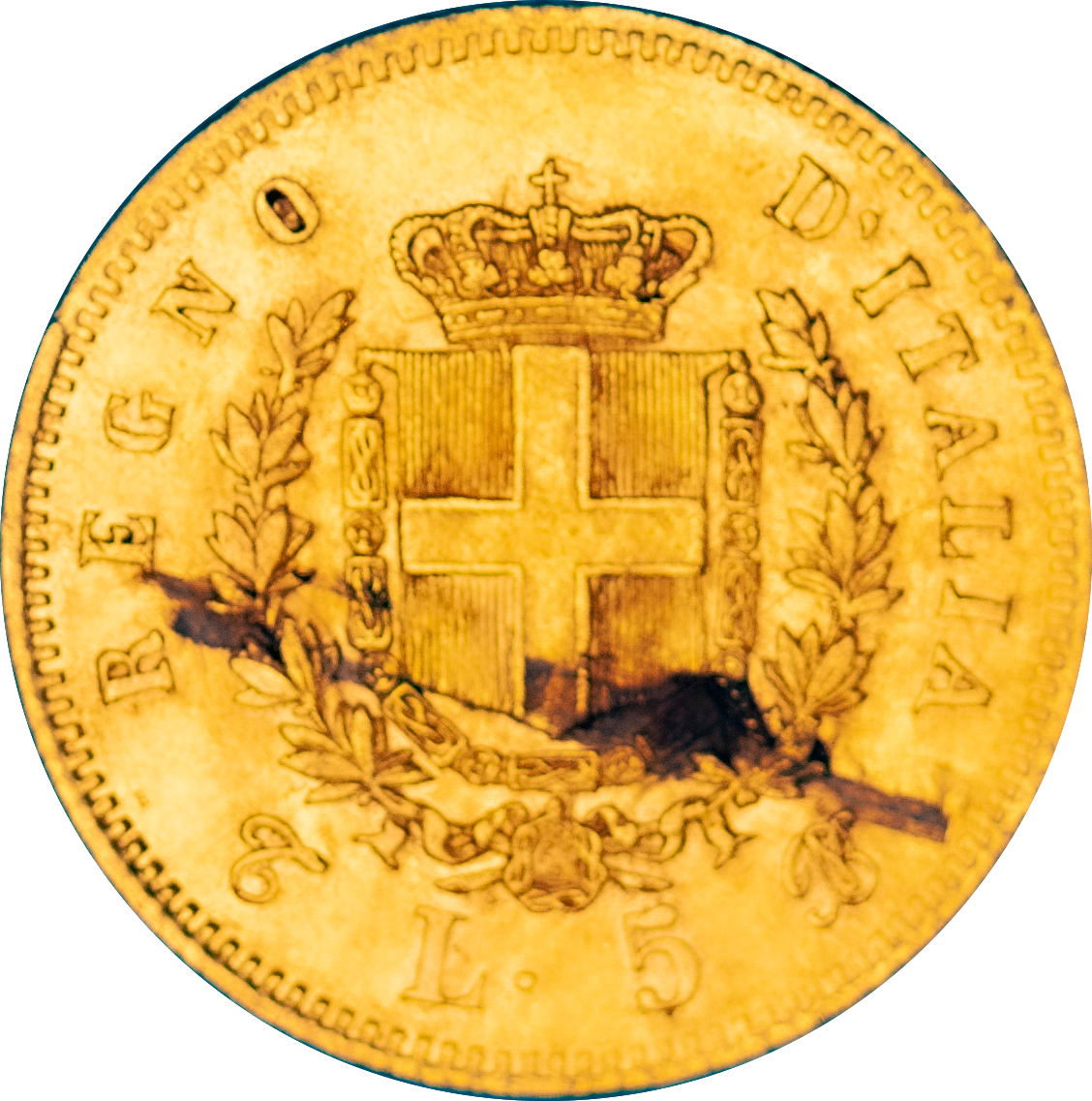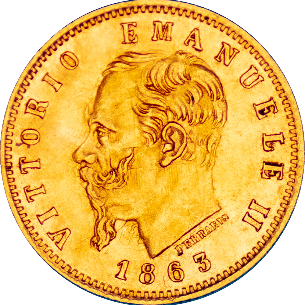 PRIX ET VALEUR DU ROYAUME D'ITALIE - 5 LIRE VICTOR EMMANUEL II 1863 TURIN