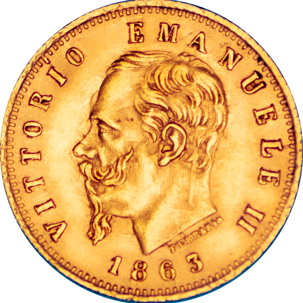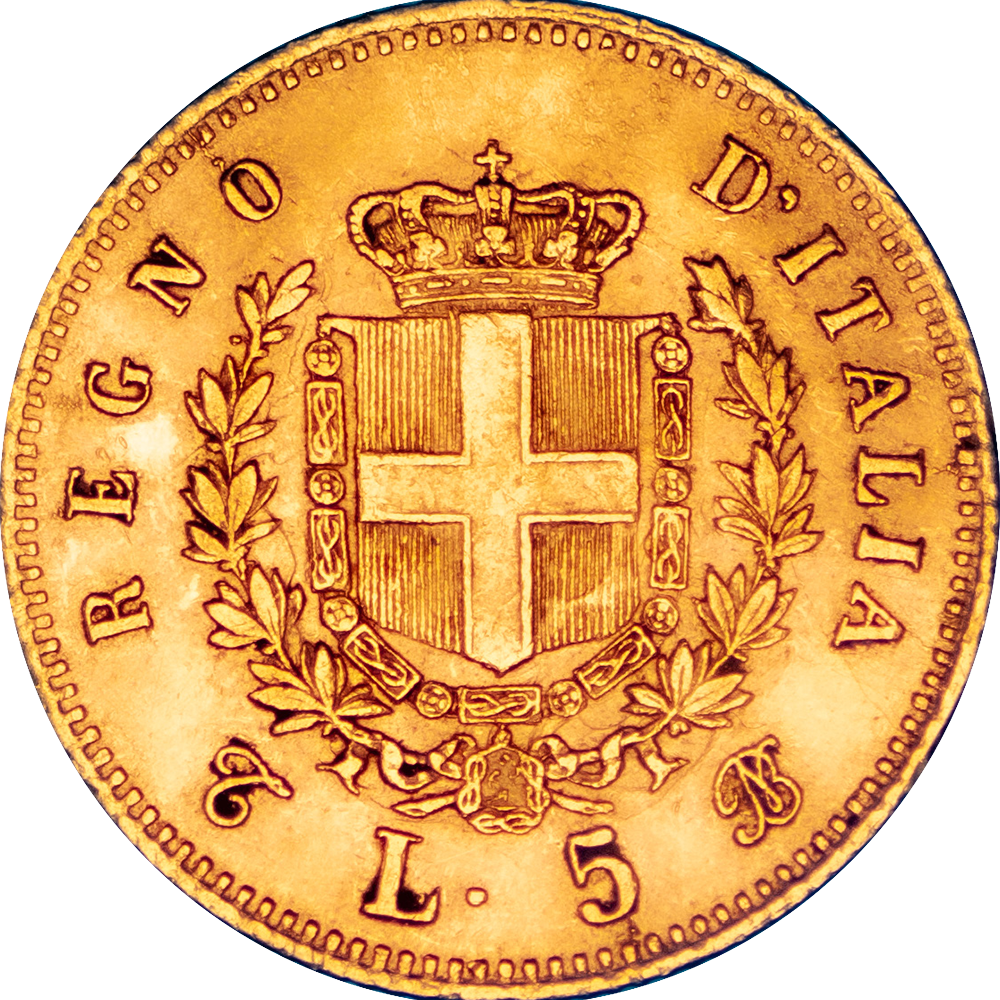 PRIX ET VALEUR DU ROYAUME D'ITALIE - 5 LIRE VICTOR EMMANUEL II 1863 TURIN