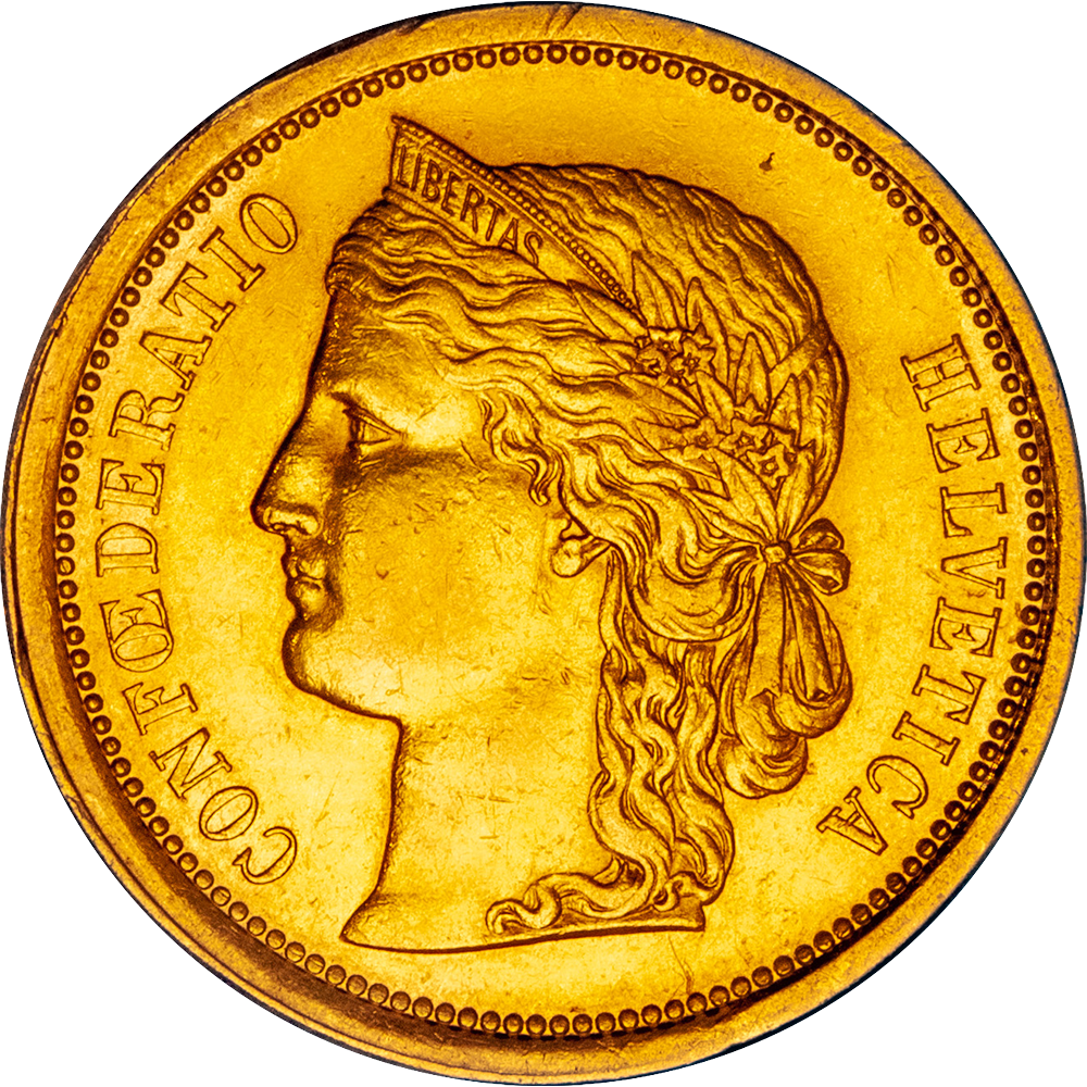 Description: Personnification de Libertas ornée d'une coiffe tournée vers la gauche Inscription Confédération helvétique