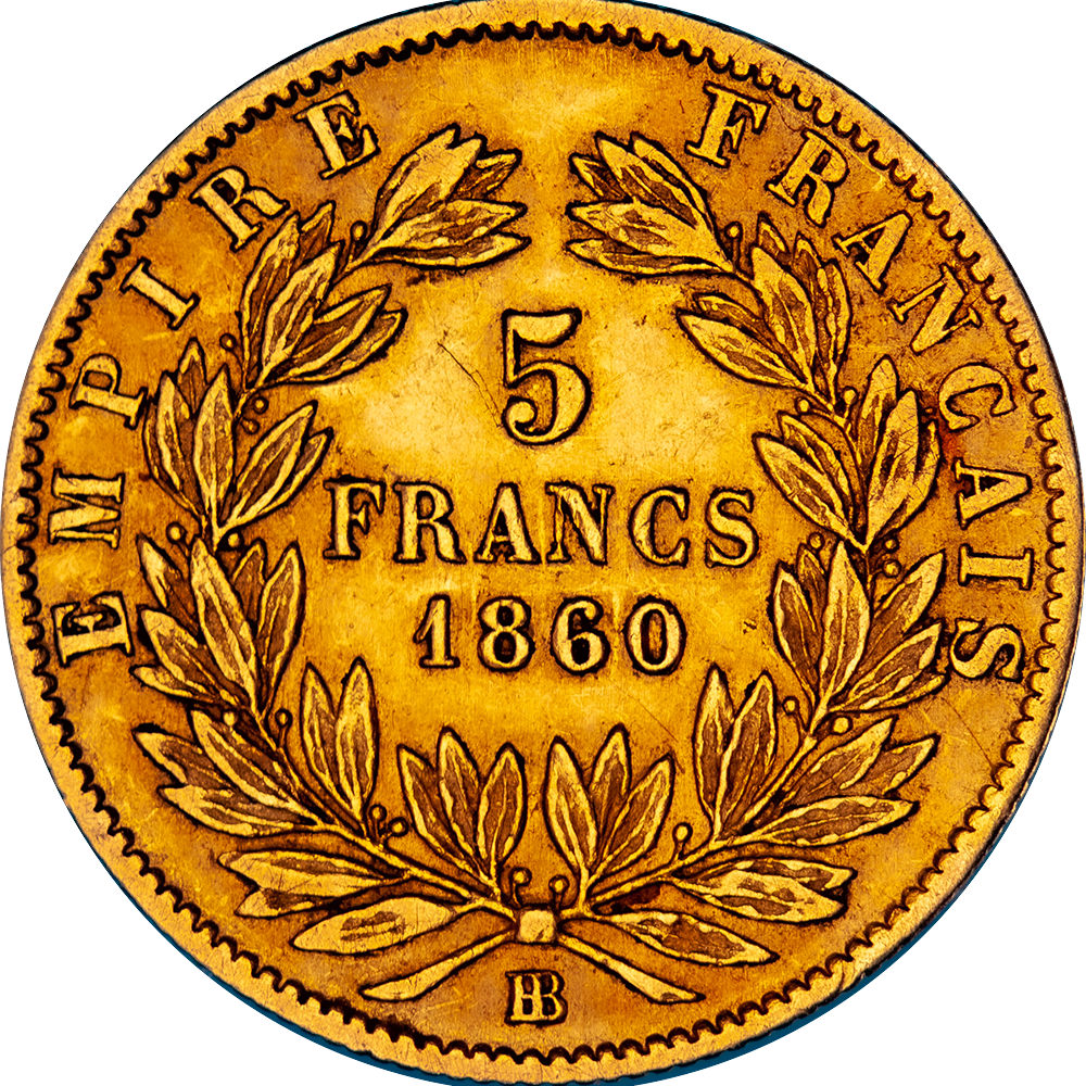 PRIX ET VALEUR DU FRANCE 5 FRANCS LOUIS NAPOLÉON 1860 STRASBOURG