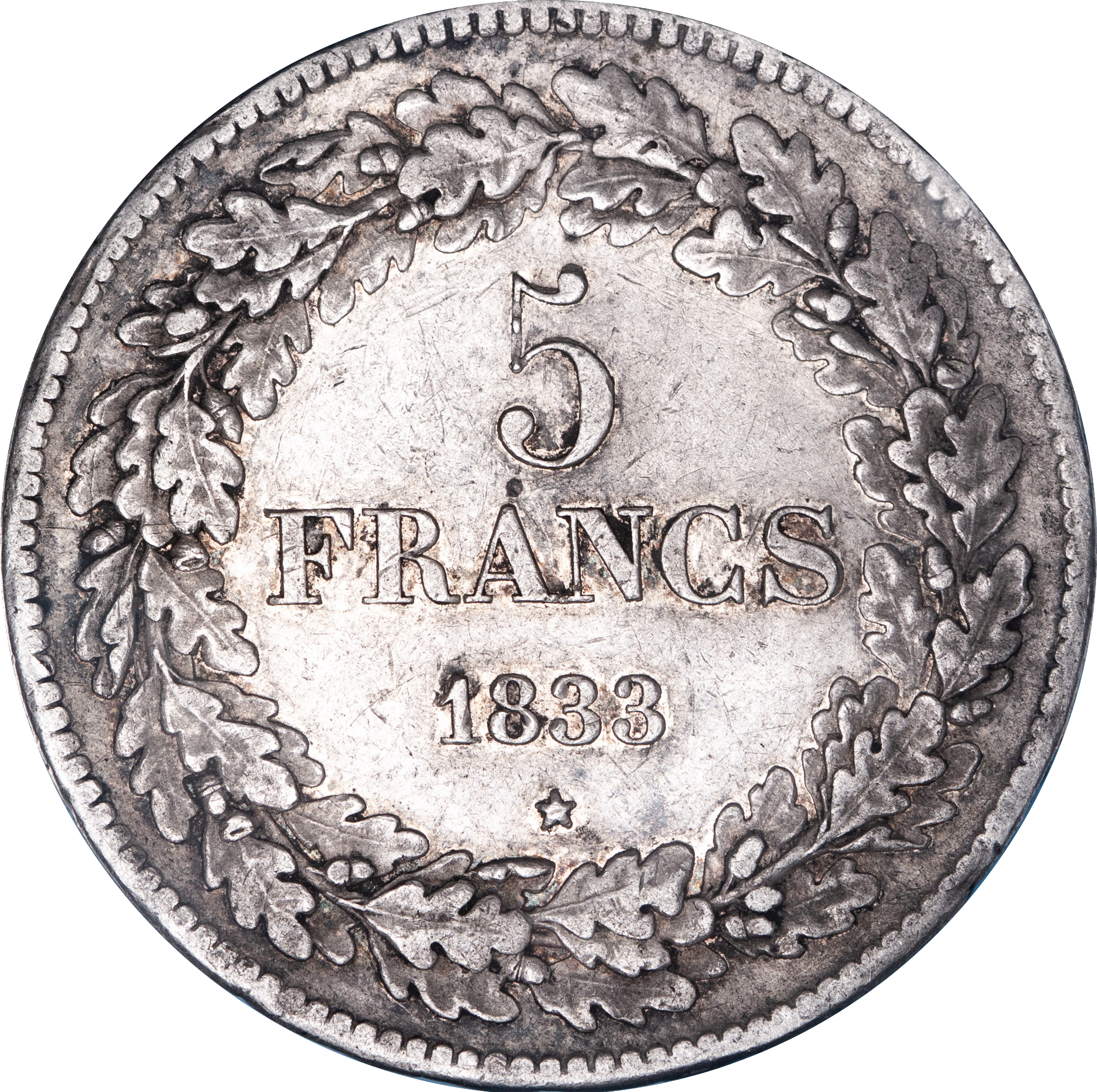Titulature : 5/ FRANCS/ 1833/ * EN TROIS LIGNES.