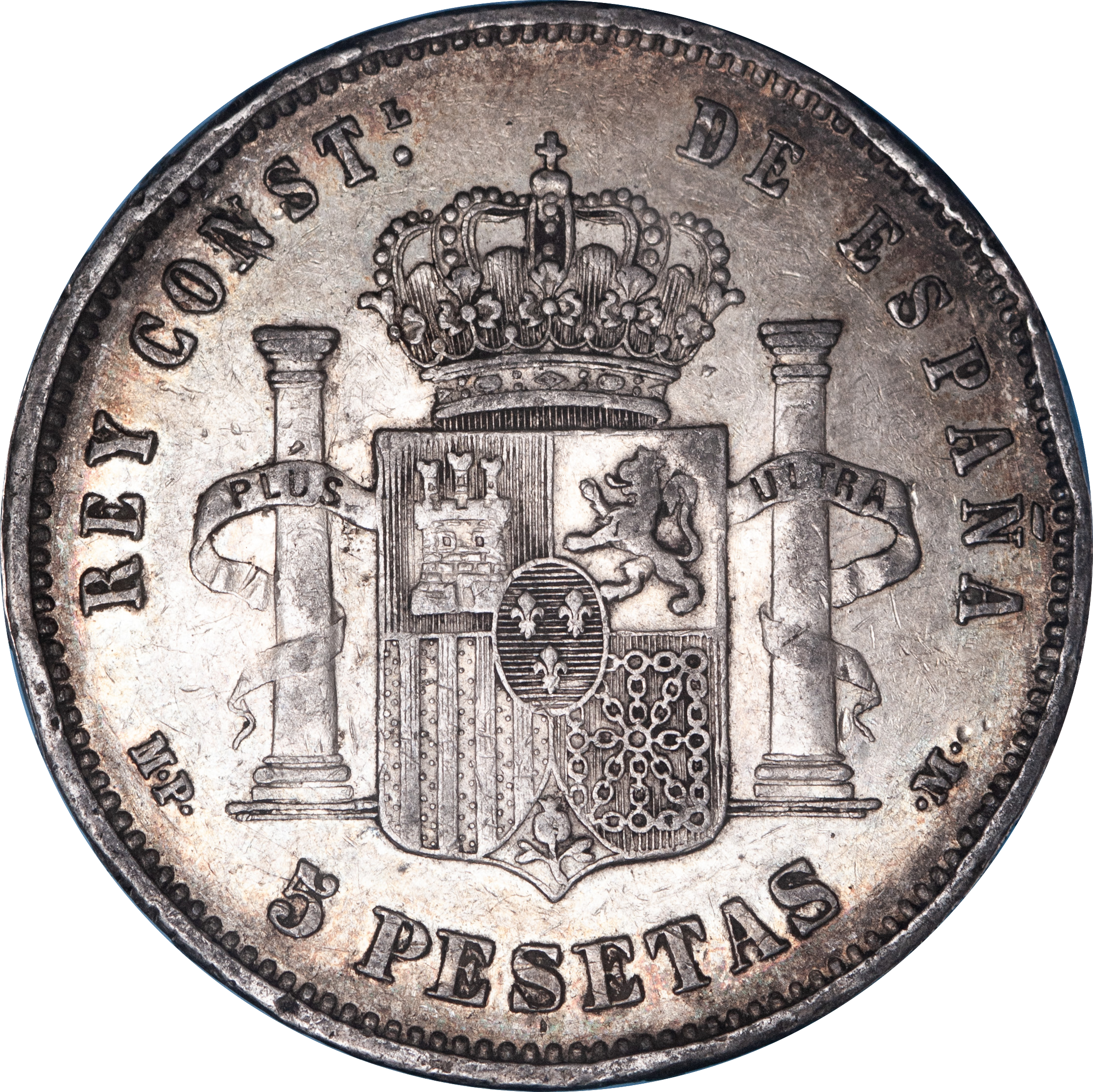 Titulature : REY CONSTL. DE ESPAÑA / 5 PESETAS.