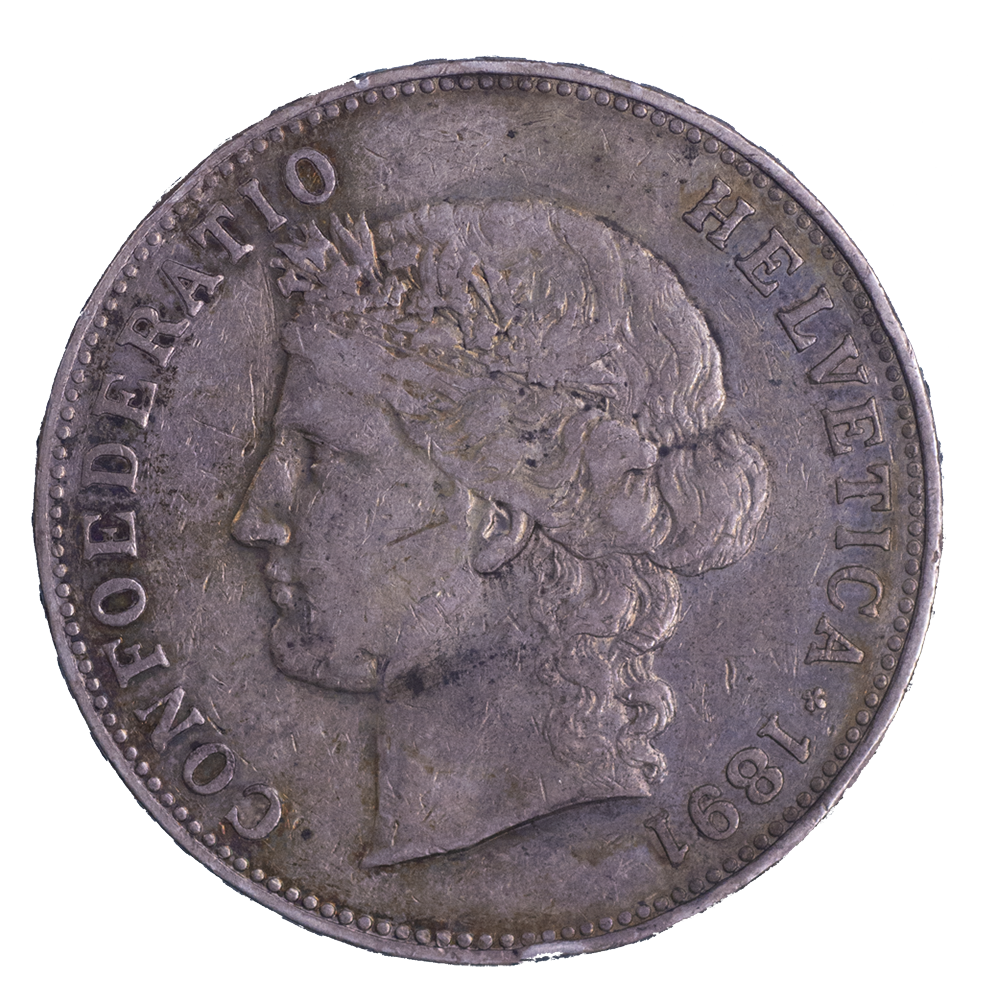 Légende : CONFEDERATIO HELVETICA . 1891 (Confédération Helvétique 1891)