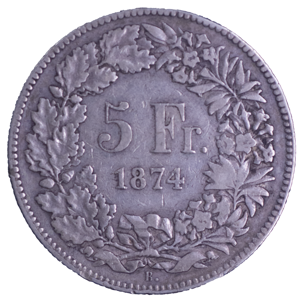 PRIX ET VALEUR DU PIÈCE DE MONNAIE : SUISSE 5 FRANCS HELVÉTIA ASSISE 1874 BRUXELLES