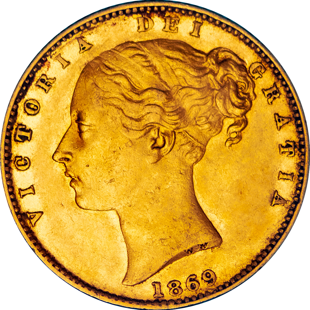 Royaume-Uni Souverain Victoria Buste jeune et Armoiries 1869ROYAUME-UNI SOUVERAIN VICTORIA BUSTE JEUNE ET ARMOIRIES 1869