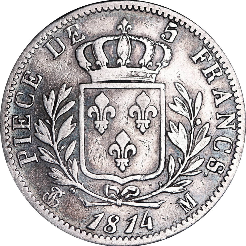 PRIX ET VALEUR DU 5 FRANCS LOUIS XVIII BUSTE HABILLÉI 1814 TOULOUSE