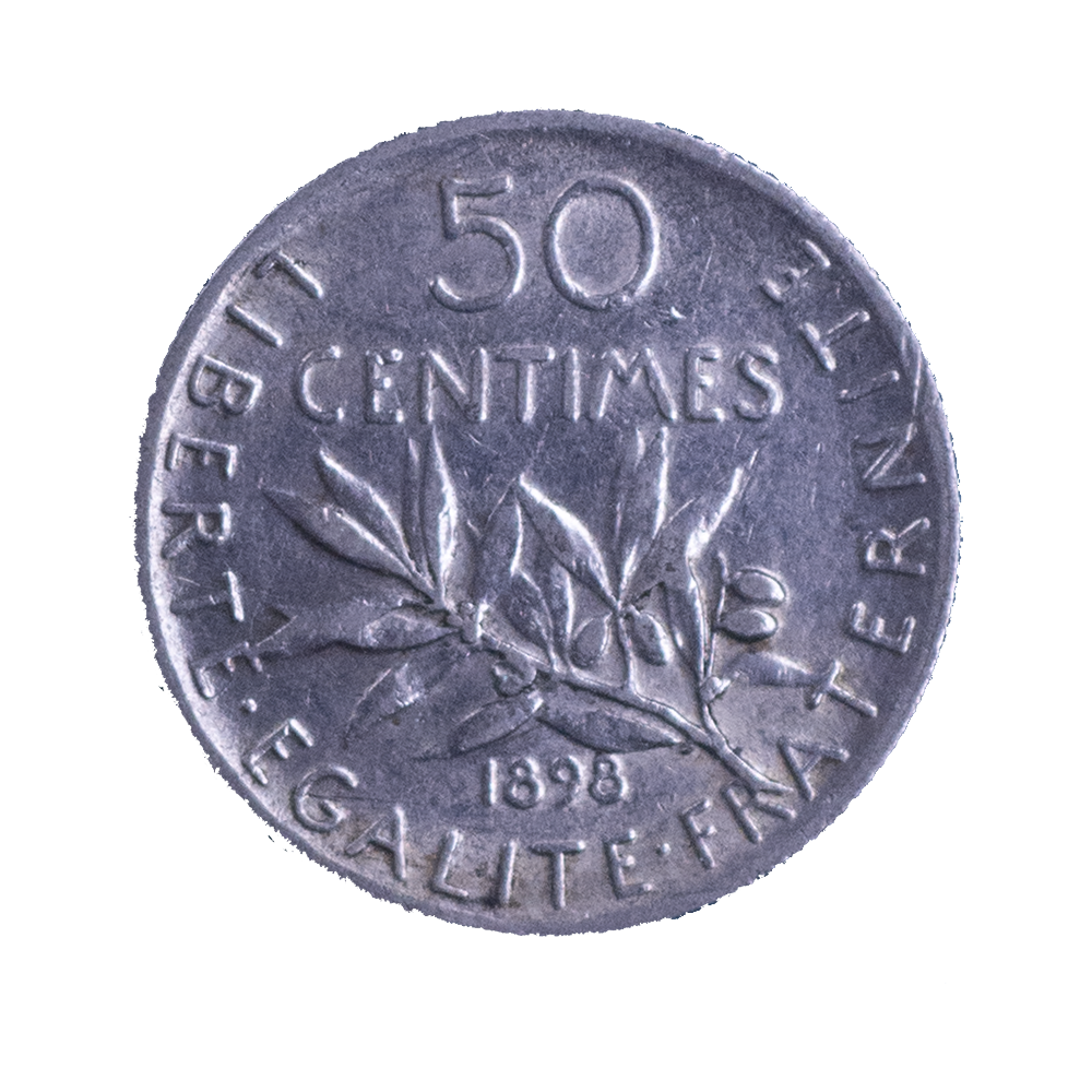 Description : 50 centimes au-dessus d'une branche d’olivier; au-dessous 1898.