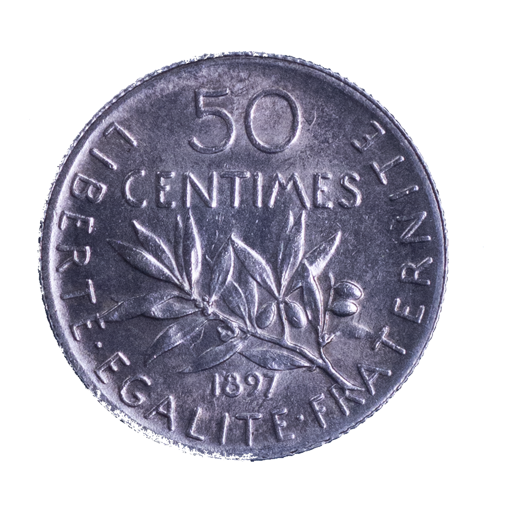 Description : 50 centimes au-dessus d'une branche d’olivier; au-dessous 1897.