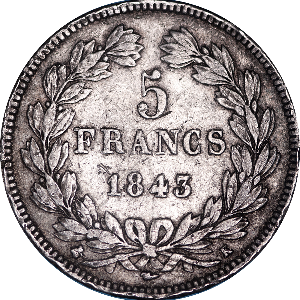 PRIX ET VALEUR DU 5 FRANCS LOUIS-PHILIPPE 1843 BORDEAUX