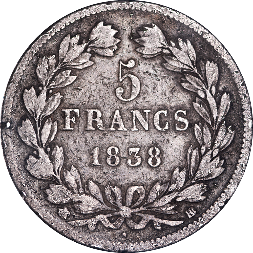 PRIX ET VALEUR DU 5 FRANCS ECU LOUIS-PHILIPPE 1838 STRASBOURG
