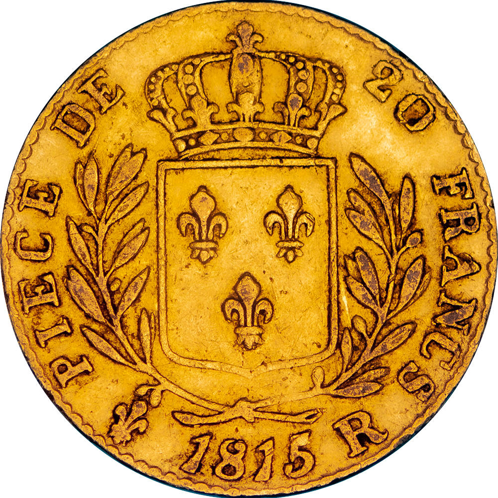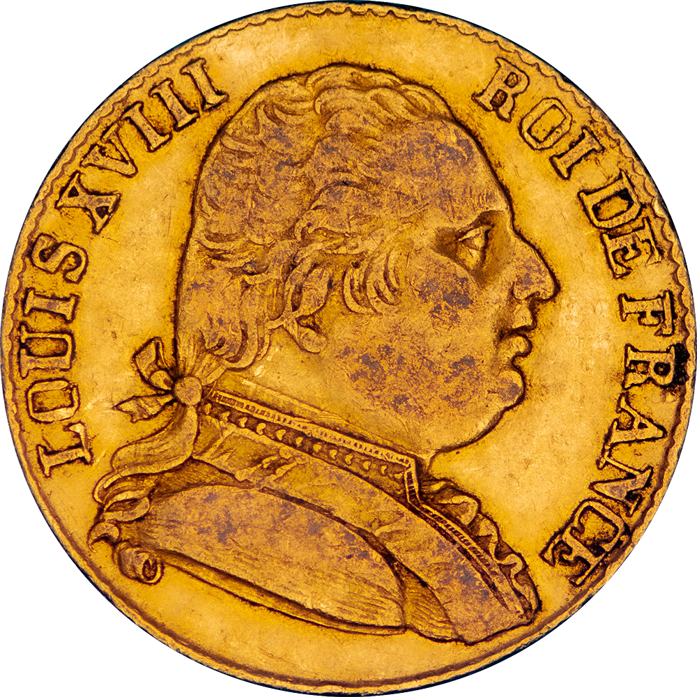 Cette pièce d'or fut créée après la première restauration du règne de Louis XVIII. Mise en place pendant l'exil du Roi, cette pièce de monnaie a été frappée à Londres, on dénombre un peu plus de 870 000 exemplaires.