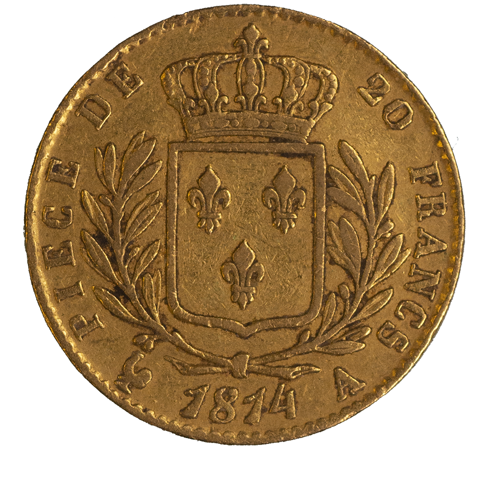 PRIX ET VALEUR DU PIÈCE DE MONNAIE : LOUIS XVIII-20 FRANCS 1814 PARIS