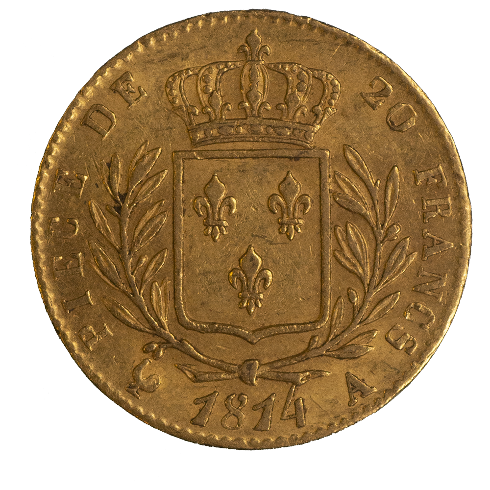 PRIX ET VALEUR DU PIÈCE DE MONNAIE : LOUIS XVIII-20 FRANCS 1814 PARIS