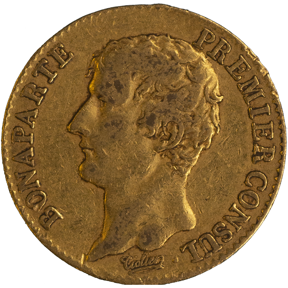 Description : Profil gauche de Bonaparte tête nue; sous la tranche du cou le long du listel est inscrit Tiolier en cursif.