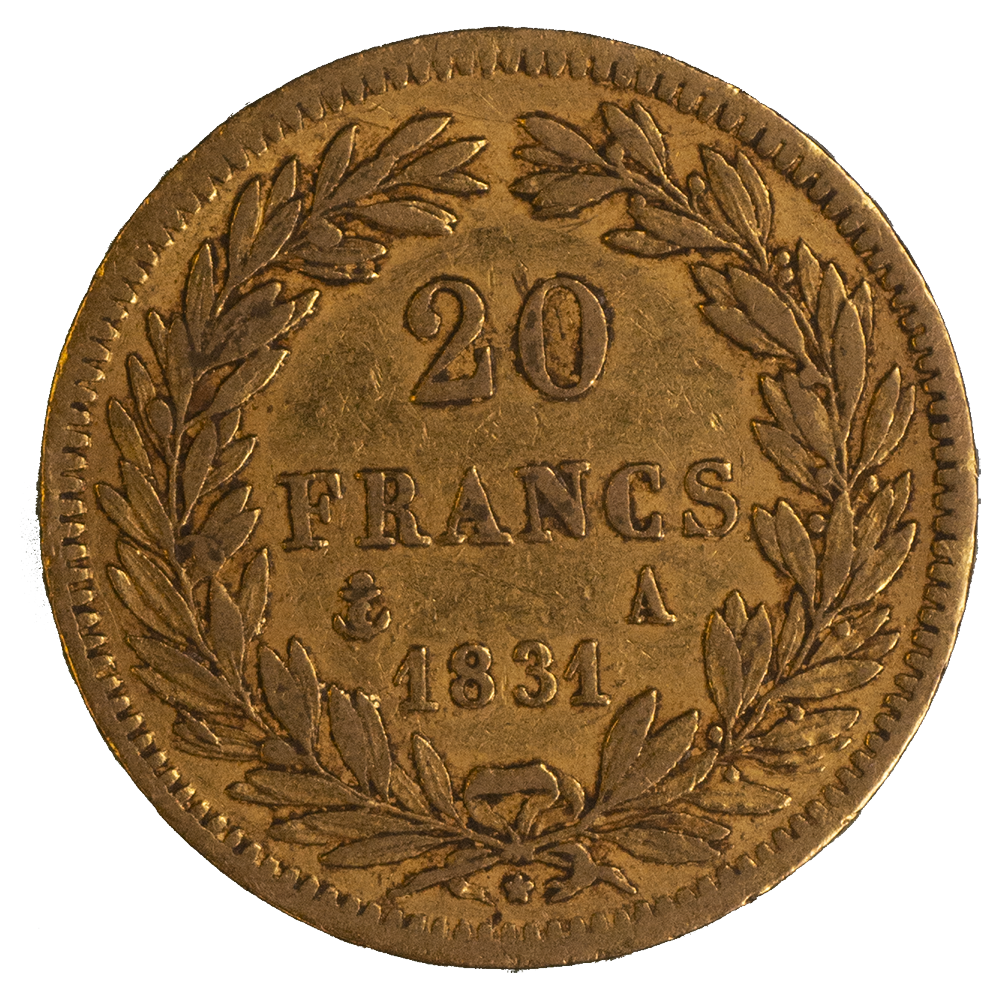 Le millésime 1831 sous la faciale, différent Jean-Pierre COLLOT et lettre d'atelier A le long du listel de part et d'autre du différent de Graveur Général placé sous le noeud qui réunit les deux branches de la couronne.