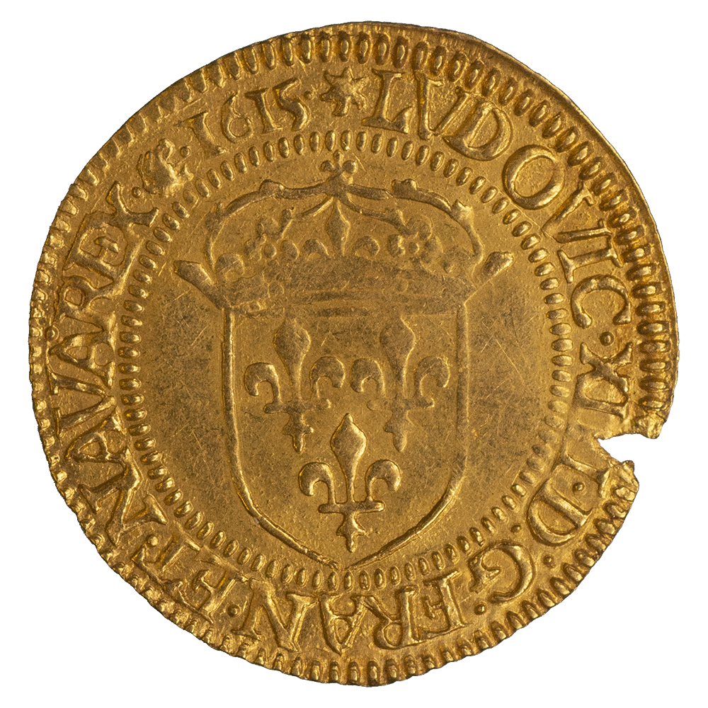 Légende : LVDOVICVS XIII D : G FRAN ET NAVAR REX 1615 (Louis XIII rois de France et de Navarre)