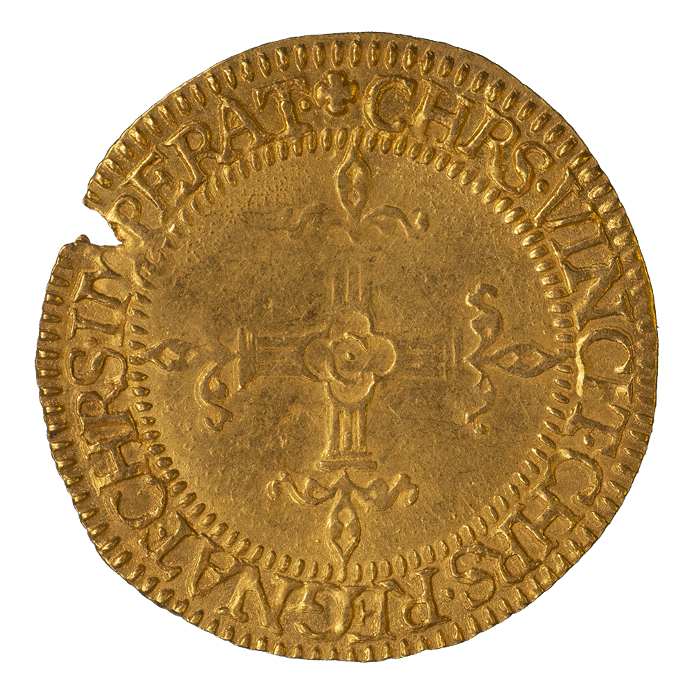 Monnaie royale du XVI ème siècle, cet écu d'or est dit « au Soleil » en raison de l'astre qui apparaît sur l'avers. Le cours légal de cette pièce fut augmenté à maintes reprises avec la guerre, la crise économique et la sortie des espèces monétaires vers les pays étrangers où elles étaient fondues. D'abord fixé sous le règne d'Henri IV à 3 livres et 15 sols, son cours atteindra 5 livres et 4 sols en 1636.