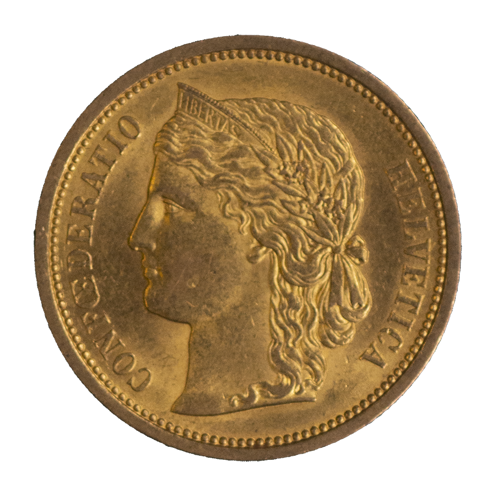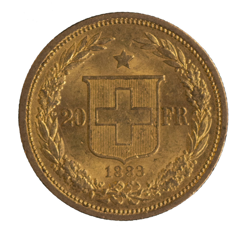 En 1893 et 1895 quelques pièces (25 et 19 en font une rareté) ont été frappées avec de l'or provenant de la mine de Gondo. On les différencie par leur couleur plus claire et un poinçon au milieu de l'écusson suisse