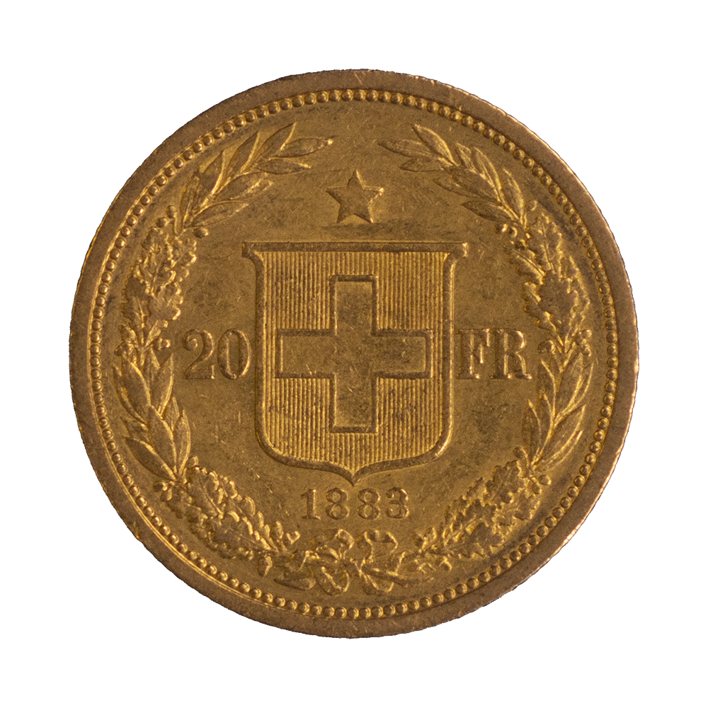 En 1893 et 1895 quelques pièces (25 et 19 en font une rareté) ont été frappées avec de l'or provenant de la mine de Gondo. On les différencie par leur couleur plus claire et un poinçon au milieu de l'écusson suisse