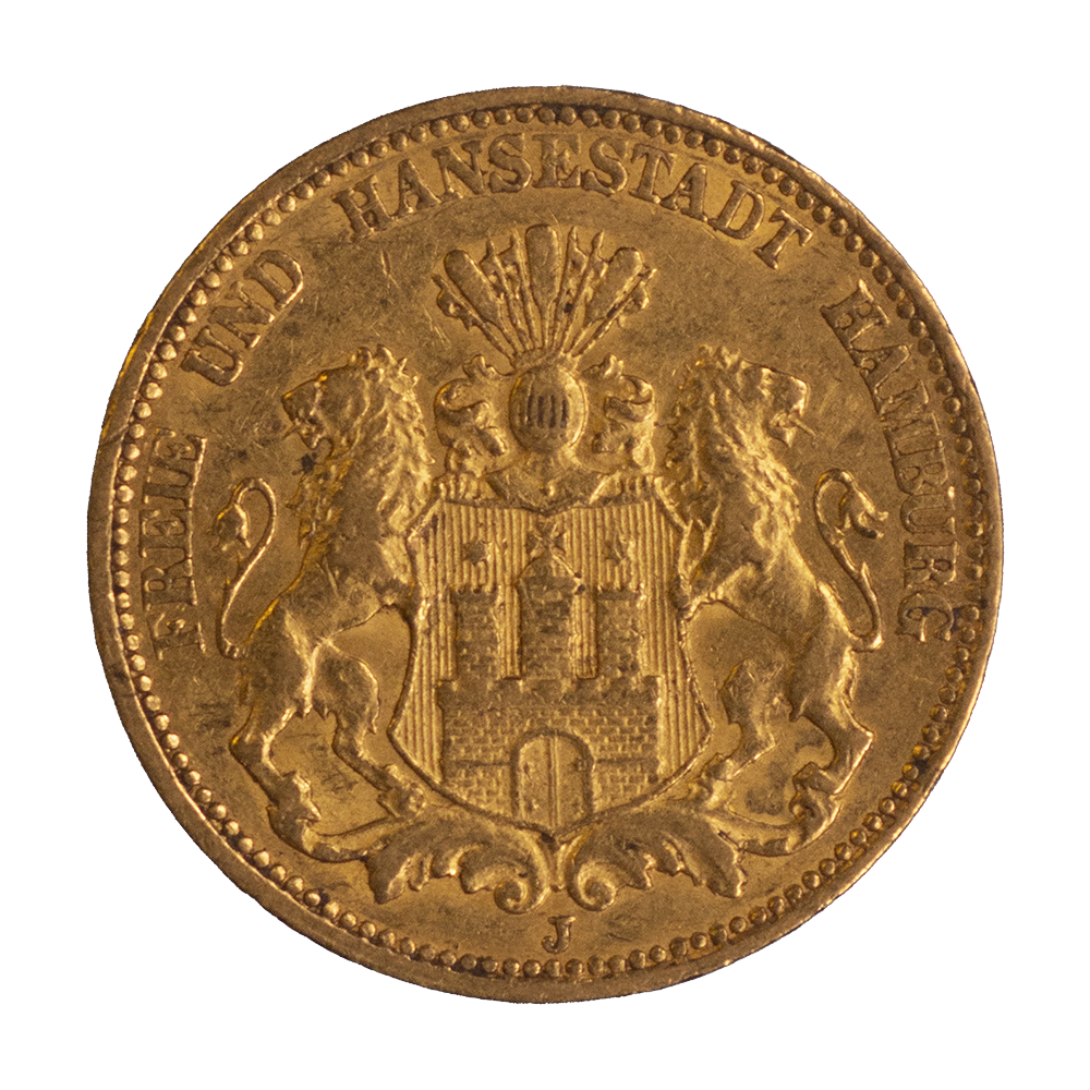 Description : Armoirie de Hambourg couronnée d'un heaume et encadré par deux lions debout se repoussant