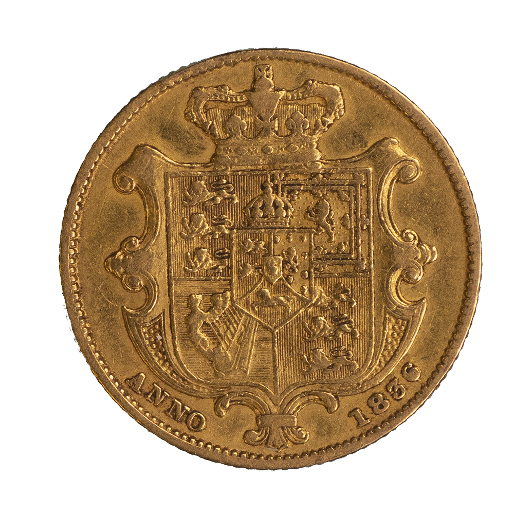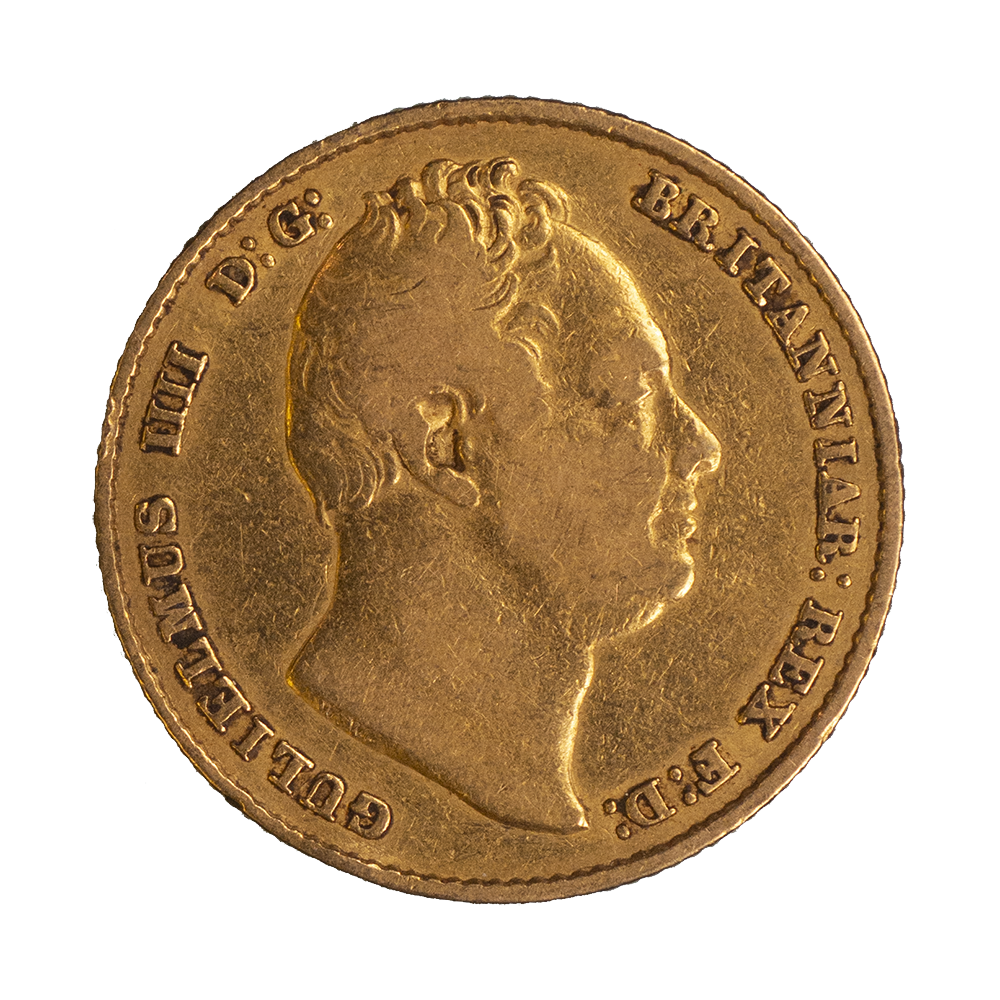Légende : GULIELMUS IIII D:G BRITANNIAR:REX F:D: (Guillaume IV par la grâce de Dieu, roi des Bretons, défenseur de la Foi).